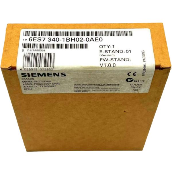 The **SIEMENS 6ES7340-1BH02-0AE0 SIMATIC S7-300 CP 340 Communication Processor** is a module designed for the **SIMATIC S7-300** series. It features a 20mA current loop interface, commonly referred to as a TTY interface, for communication purposes. This module facilitates data exchange between the S7-300 system and external devices that utilize the 20mA current loop communication standard (TTY).
